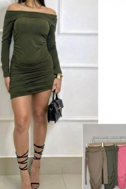 VESTIDO FRUNCIDO CUELLO BARCO