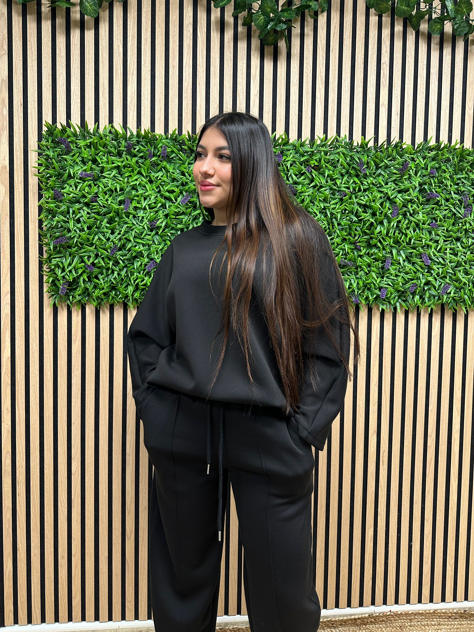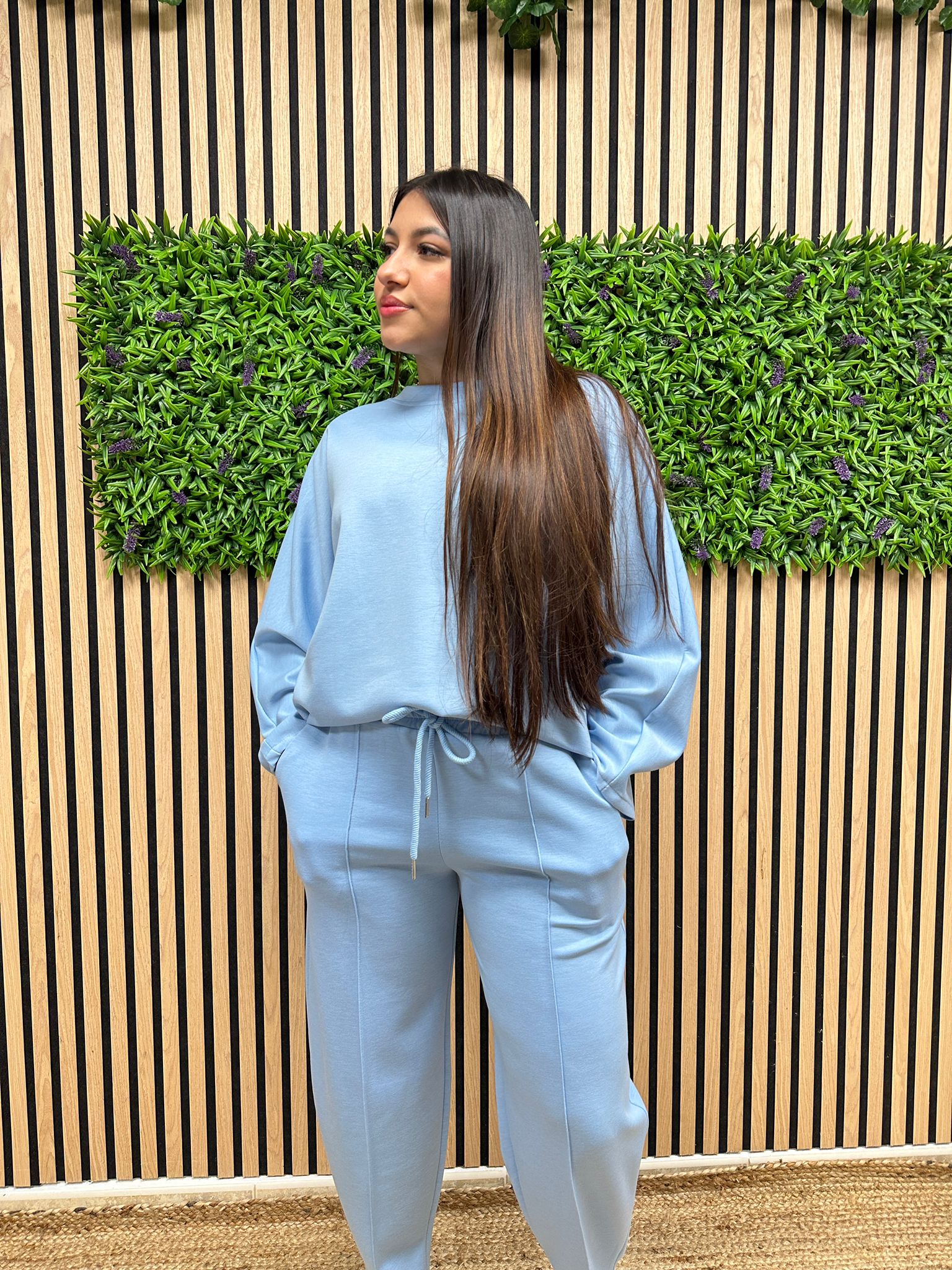 Composición: 55% poliéster, 39% viscosa y 6% elastano.