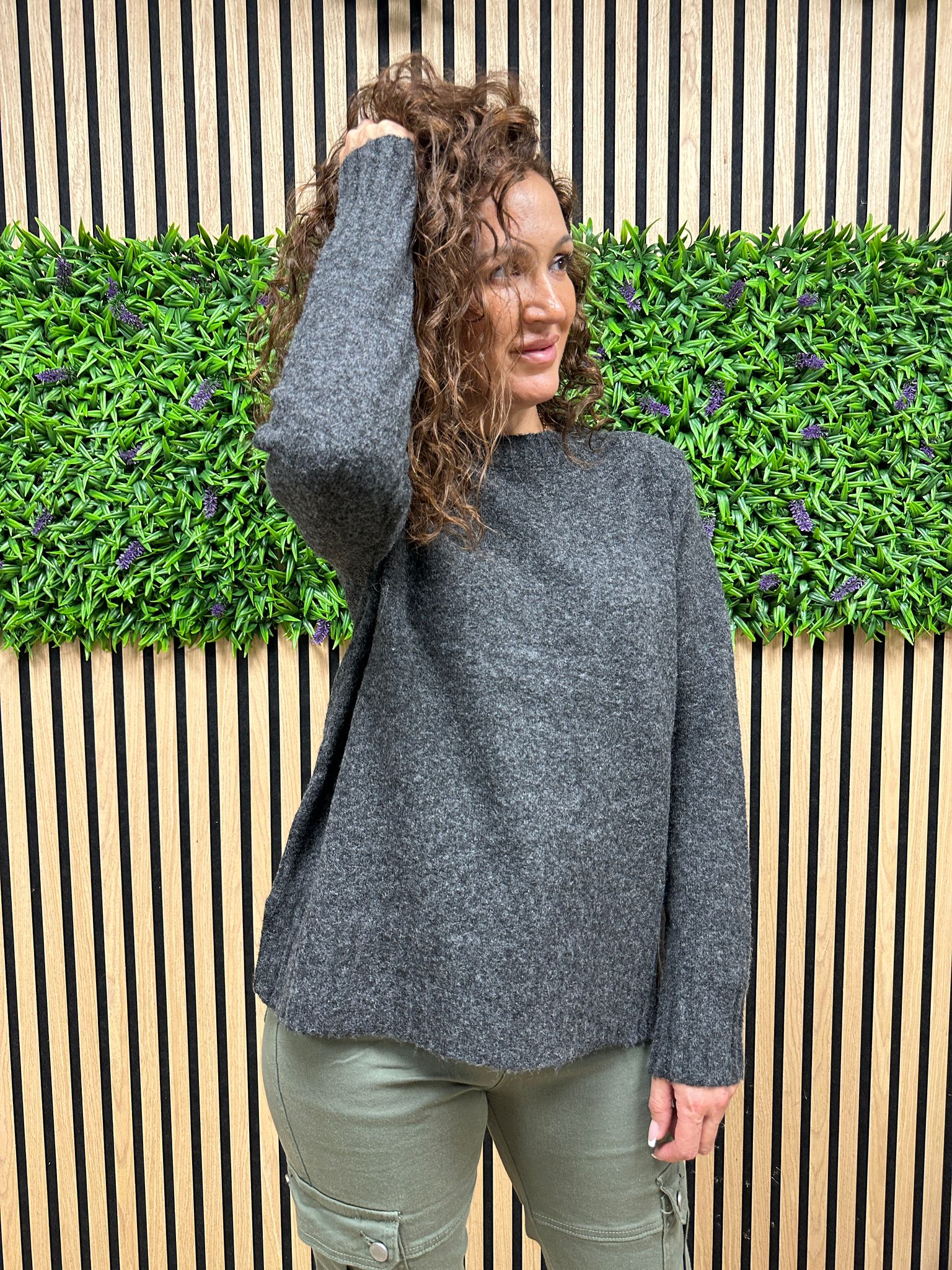 Composición: 50% poliéster reciclado 39% poliéster 6% spandex 5% lana