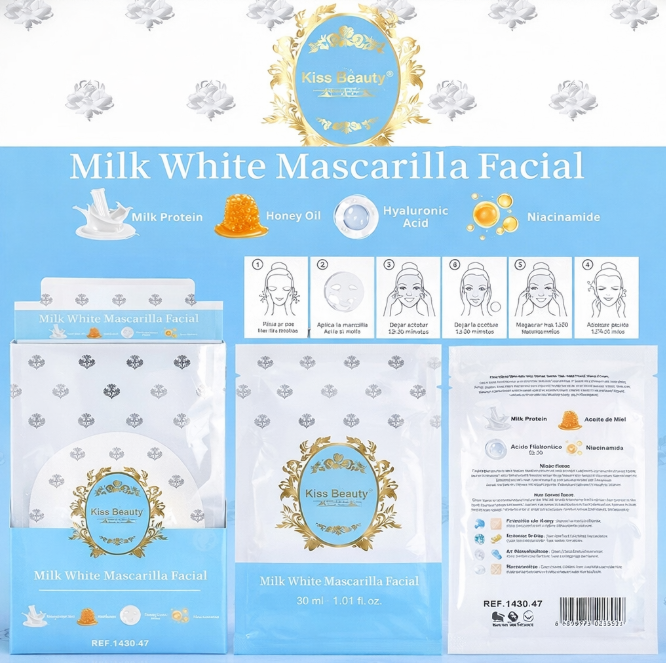 La Mascarilla Facial Milk White de Kiss Beauty está diseñada para hidratar profundamente, iluminar y mejorar la textura de la piel desde la primera aplicación. Su fórmula avanzada combina ingredientes altamente efectivos que ayudan a nutrir la piel, aportando suavidad, frescura y un aspecto visiblemente más saludable.