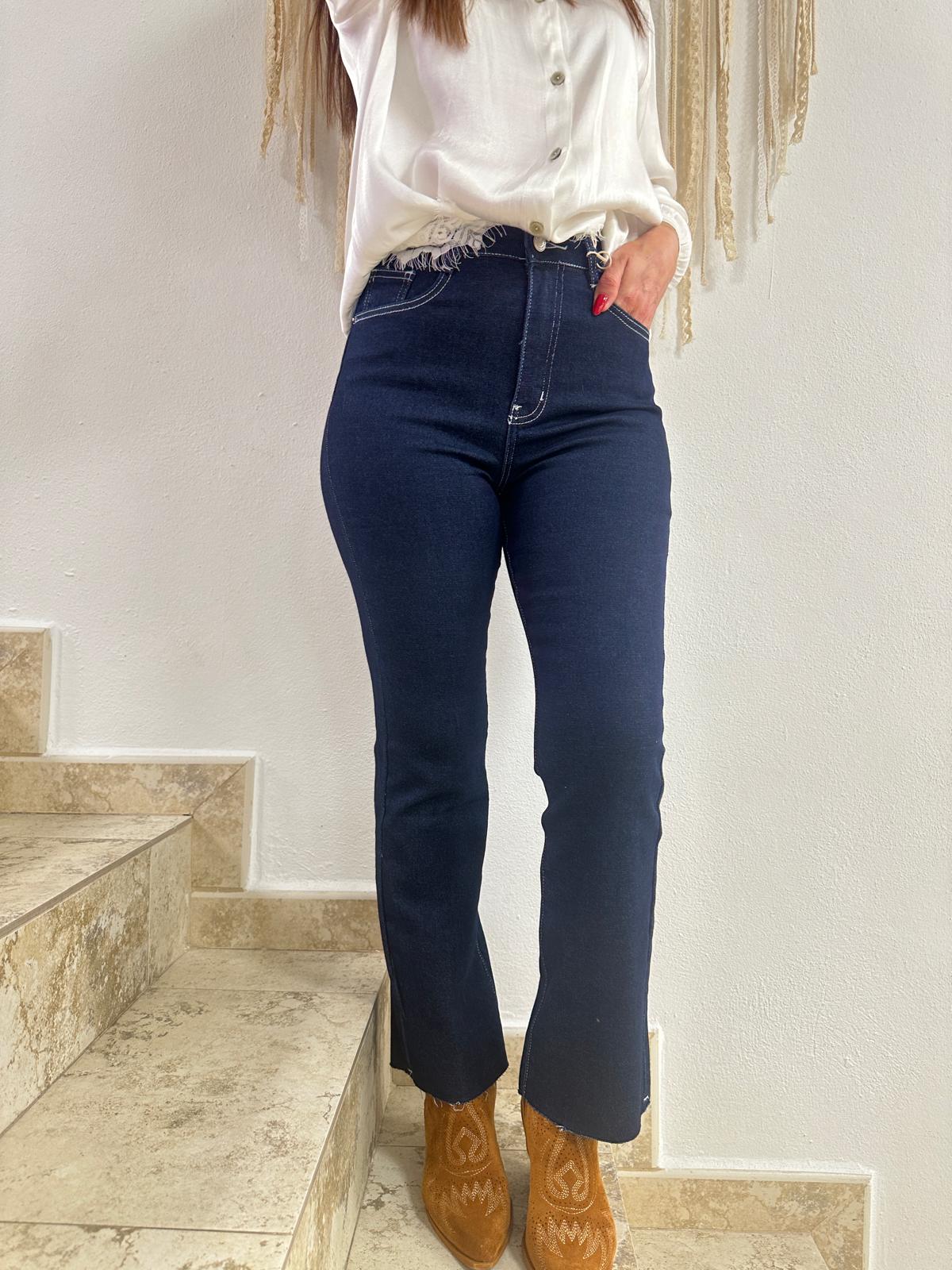 PANTALON VAQUERO FLARE PESPUNTEADO BLANCO